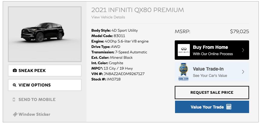 Whether it’s a new INFINITI, or certified pre-owned, or one of our many quality used vehicles, you can save yourself a lot of footwork by browsing our incredible selection right here at the website.