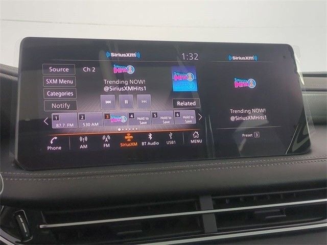 - Radio: Bose Performance Series -inc: 17 speakers, INFINITI InTouch 12.3" interactive display w/navigation (includes mapcare and premium traffic), INFINITI InTouch w/wireless Apple CarPlay integration and Android Auto (includes Bluetooth®), HD Radio technology, SiriusXM radio, WiFi hotspot, INFINITI voice recognition w/Siri Eyes Free/Google Assistant, INFINITI InTouch services, Active Noise Cancellation (ANC), Bluetooth® hands-free phone/voice control switches, data capable type-A and type C USB connection ports and steering wheel audio controls